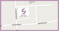 We are located in the Bukit Minyak - Penang, StarWay Hotel is an all new and affordable business and leisure hotel where comfort, convenience and security are its priority. Strategically located, 5minutes to Auto-City and Prai Industry and 10minutes to Penang Bridge. It is in close proximity to a variety of eateries, shopping, medical and commercial facilities. StarWay Hotel is modernly designed with your ultimate comfort in mind featuring complimentary WIFI connectivity and Flat screen LED TVs. It offers well equipped guestrooms designed with modern bathrooms and amenities. |